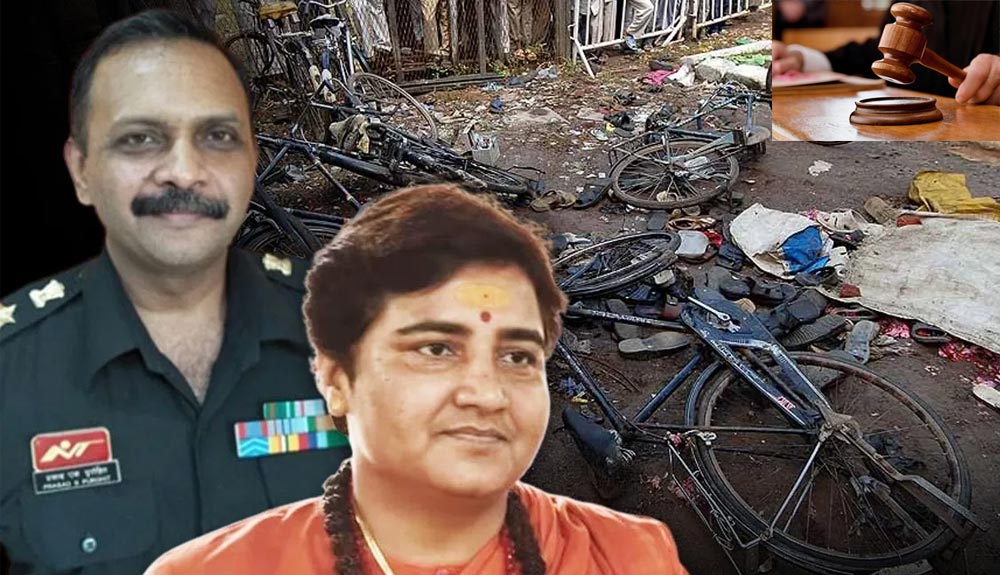 या प्रकरणात भाजपाच्या माजी खासदार साध्वी प्रज्ञासिंह ठाकूर, कर्नल प्रसाद पुरोहित, निवृत्त मेजर रमेश उपाध्याय, अजय राहिरकर, सुधाकर द्विवेदी उर्फ स्वामी अमृतानंद, सुधाकर चुतर्वेदी आणि समीर कुलकर्णी हे आरोपी आहेत.