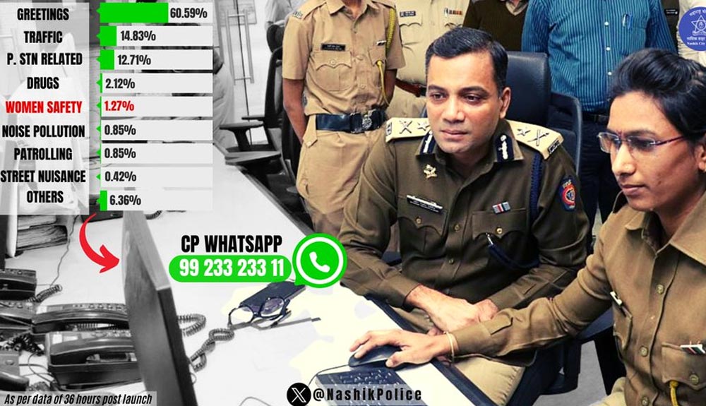 संदीप कर्णिक यांनी नाशिक पोलिस आयुक्तपदाची सूत्रे हाती घेतल्यापासून नागरिककेंद्रित पोलिसिंगवर भर दिला आहे. त्यानुसार नाशिक पोलिसांच्या ‘एक्स हँडल’वर नागरिकांनी केलेल्या तक्रारींना त्वरित प्रतिसाद दिला जात आहे. नाशिक शहर पोलिसांच्या कारवाईची माहितीही सांगितली जात असल्याने नागरिकांना पोलिसांच्या कार्यप्रणालीची माहिती मिळत आहे. शहर पोलिसांच्या एक्स हँडलवर ४९ हजार फॉलोअर्स आहेत. मात्र, अनेक नागरिक ‘एक्स’ वापरत नसल्याने त्यांच्या सुविधेकरिता व्हॉट्सॲपच्या माध्यमातून तक्रार नोंदवून त्यावर कारवाईचे अपडेट मिळविण्याची सुविधा सुरू करण्यात आली आहे.