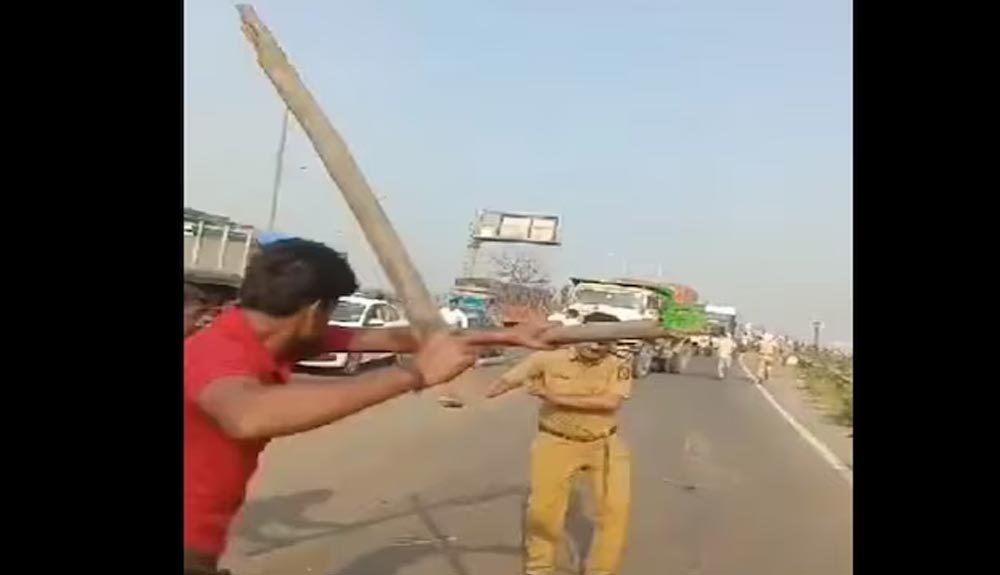 ट्रकचालकांचा आंदेलनाला हिंसक वळण, पोलिसाला मारहाण केल्याचा व्हिडीओ व्हायरल pic.twitter.com/w1sc2hbGOQ