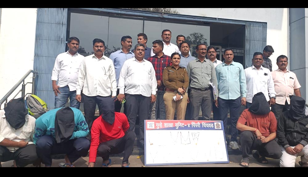 सदरची कारवाई पिंपरी चिंचवडचे पोलिस आयुक्त विनयकुमार चौबे, सह पोलिस आयुक्त डॉ. संजय शिंदे, अपर पोलिस आयुक्त वसंत परदेशी, पोलिस उप-आयुक्त, गुन्हे, स्वप्ना गोरे, सपोआ, गुन्हे सतिश माने, सपोआ बाळासाहेब कोपनर यांचे मार्गदर्शनाखालील गुन्हे शाखा, युनिट-४, वरिष्ठ पोलिस निरीक्षक संतोष पाटील, सपोनि सिद्धनाथ बाबर, पोउपनि गणेश रायकर, पोउपनि आबासाहेब किरनाळे सहा.पो.उप.नि. नारायण जाधव, संजय गवारे, दादा पवार, अदिनाथ मिसाळ, पोहवा / प्रविण दळे, तुषार शेटे, मोहम्मद गौस नदाफ, सुरेश जायभाये, रोहिदास आडे, पोना/ वासुदेव मुंडे, सुनिल गुट्टे, पोशि/ प्रशांत सैद, धनाजी शिंदे, गोविंद चव्हाण, सुखदेव गावंडे यांनी केली आहे.