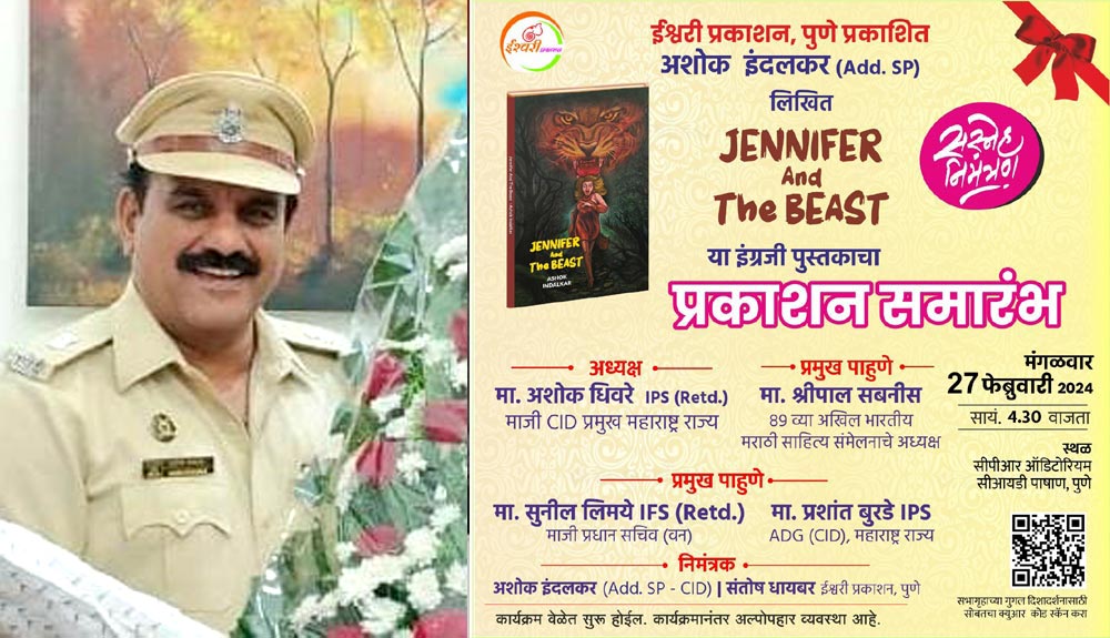पुणेः अपर पोलिस अधीक्षक (सीआयडी, क्राईम) आणि प्रसिद्ध लेखक अशोक इंदलकर यांनी लिहीलेल्या ‘जेनिफर ऍण्ड दि बीस्ट’ या इंग्रजी पुस्तकाचे आज (मंगळवार, ता. २७) माजी पोलिस अधिकारी अशोक धिवरे यांच्या हस्ते प्रकाशन होणार आहे.