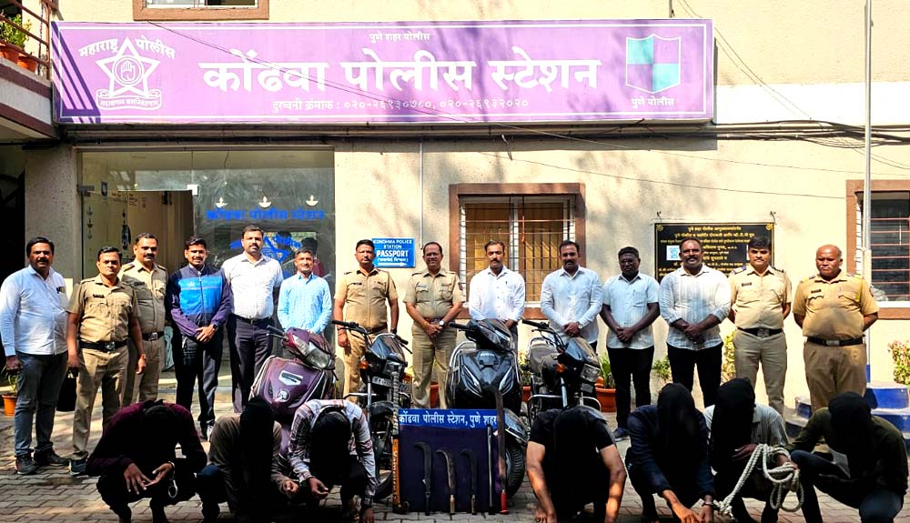 संबंधित कारवाई अपर पोलिस आयुक्त पुर्व प्रादेशिक विभाग मनोज पाटील, पोलिस उप-आयुक्त परिमंडळ-५, श्री डॉ. राजकुमार शिंदे, मा.सहा. पोलिस आयुक्त वानवडी विभाग, धन्यकुमार गोडसे, कोढवा पोलिस स्टेशनचे वरिष्ठ पोलिस निरीक्षक विनय पाटणकर, पोलिस निरीक्षक (गुन्हे) अब्दुल रौफ शेख, सुरज बेंद्रे यांचे मार्गदर्शनाखाली कोंढवा पोलिस स्टेशन येथील तपास पथकाचे पोलिस उपनिरीक्षक बालाजी डिगोळे, पोलिस हवालदार अमोल हिरवे, सतिश चव्हाण, निलेश देसाई, विशाल मेमाणे, गोरखनाथ चिनके पोलिस अंमलदार संतोष बनसुडे, लक्ष्मण होळकर, शाहिद शेख, सुरज शुक्ला, सागर भोसले, सुजित मदन, राहुल थोरात यांच्या पथकाने केली आहे.