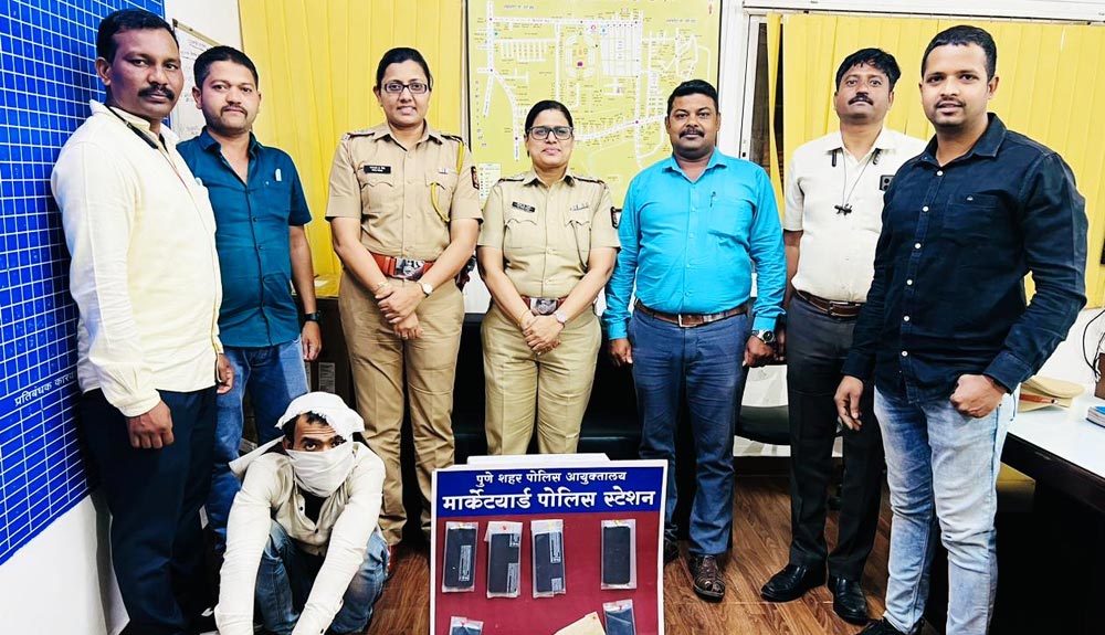 पुणे (संदिप कद्रे): मार्केटयार्ड पोलिस स्टेशन कडील रेकॉर्डवरील जबरी चोरी करणाऱ्या गुन्हेगाराला अटक करुन त्याच्याकडून ०६ मोबाईल व ०१ अॅक्टीव्हा असा एकूण ९५,१०० रुपयांचा माल जप्त केला आहे. पोलिस पुढील तपास करत आहेत.