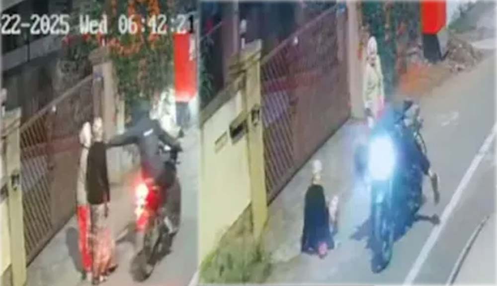 तक्रारदार महिला २२ जानेवारी रोजी सकाळी पावणेसातच्या सुमारास मॉर्निंग वॉकसाठी गेल्या होत्या. यावेळी त्यांच्यासोबत इतर एक वयोवृद्ध महिला होती. दोघी रस्त्यावरून चालत असताना दुचाकीस्वार चोरटा हमीद खान याने दुचाकीवरून येत तक्रारदार महिलेच्या गळ्यातील मंगळसूत्र चोरून नेले. ते चोरताना मंगळसूत्राचा अर्धवट भाग तुटून खाली पडला होता. त्यानंतर खान दुचाकीरून काही अंतर गेला. मंगळसूत्राचा अर्धवट राहिलेला भाग घेण्यासाठी पुन्हा वळून आला होता. त्याने ज्येष्ठ महिलेला धक्का दिला आणि अर्धवट तुटलेला भाग हिसकावून पळ काढला. ही सगळी घटना सीसीटीव्ही कॅमेऱ्यात कैद झाली होती.