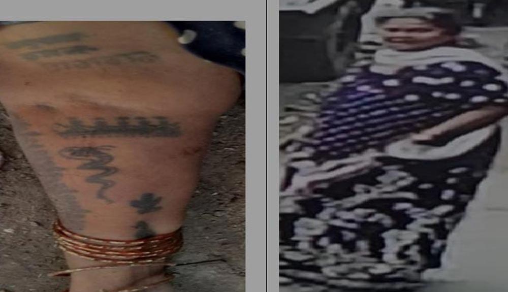 अनोळखी महिला वय अंदाजे ४०-४५ वर्षे तिचे डोके दक्षिणेस व पाय उत्तरेस उताणे स्थितीत पडलेली. महिलेच्या चेह-यावर कशाचे तरी सहाय्याने मारहाण करुन छिन्नविछिन्न केलेला असल्याचे दिसून आले आहे. तिच्या अंगावर काळे रंगाचा त्यावर पांढरे रंगाची फुलापानाची डिझाईन असलेला गाऊन, पायात पांढरे धातुचे पैंजण, उजवे हाताचे दंडावर गोंदण कमल हे नाव व इतर अस्पष्ट दिसत आहे. पोटरीवर सापाची डिझाईन व इतर गोंदण, डावे हाताचे मनगटावर गोंदण व लाल सोनेरी रंगाच्या काचेच्या बांगडया, डावे हाताचे अनामिका बोटामध्ये पांढरे धातुची अंगठी, व हातात लाल सोनेरी रंगाच्या काचेच्या बांगड्या, दोन्ही पाय गुडघ्यामध्ये दुमडलेले, रंगाने काळी सावळी आहे.