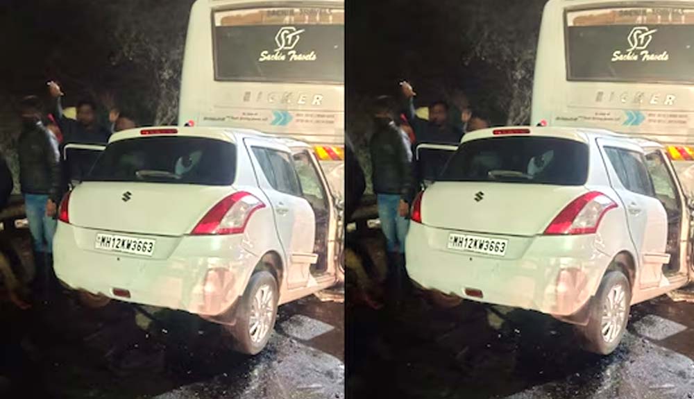 पुणे: पुणे शहरातील नवले पुलावर आज (शनिवार) पहाटे झालेल्या भीषण अपघातामध्ये दोन जणांचा जागीच मृत्यू आहे. स्विफ्ट कारने उभ्या असलेल्या बसला पाठी मागून धडक दिल्याने हा अपघात झाला आहे. अपघातात दोन जणांचा जागीच मृत्यू तर चार जण गंभीर जखमी झाले आहेत. अपघाताची घटना घडताच आसपासच्या लोकांनी तातडीने घटनास्थळी धाव घेतली. कारमध्ये अडकलेल्या तरुणांची सुटका केली. तसेच घटनेची माहिती पोलिसांना दिली.