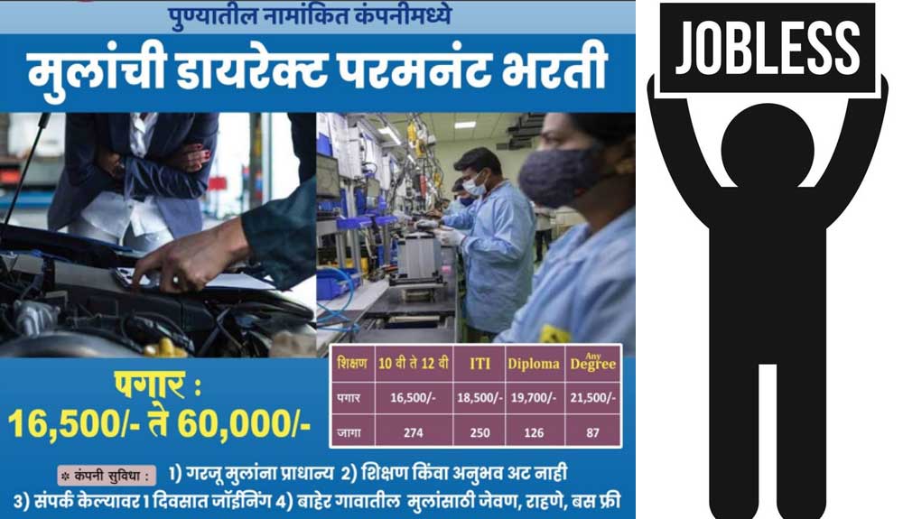पुणे : पुण्यातील नामांकित कंपनीमध्ये मुलांची डायरेक्ट परमनंट भरती. पगार १६,५०० ते ६०,००० आणि भरपूर प्रलोभणे असणारी जाहिरात परराज्यात, परजिल्ह्यात केली जाते. बेरोजगार युवकांची मानसिक, शारिरीक आणि आर्थिक फसवणूक होत असल्याचा प्रकार सध्या पुणे जिल्ह्यातील Ranjangaon Midc मध्ये होत आहे.