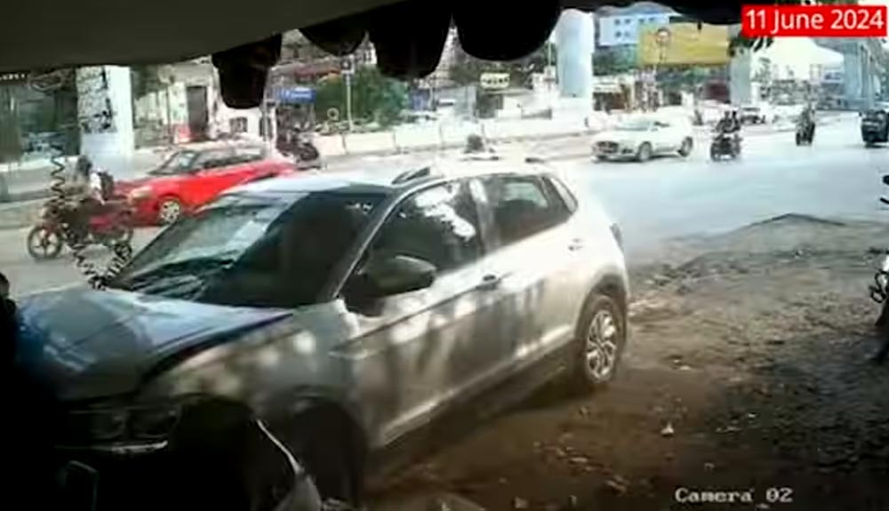 #Pune: Shocking #CCTV footage shows a woman being flung by a speeding car at Bhujbal Chowk, #Wakad. Despite the clear evidence, #Hinjawadi Police released the driver due to no formal complaint being lodged. #Pune #RoadSafety pic.twitter.com/pUxzusnyHt